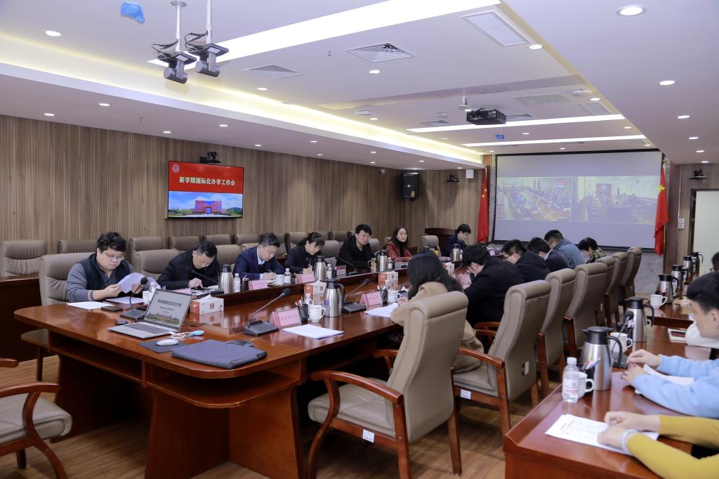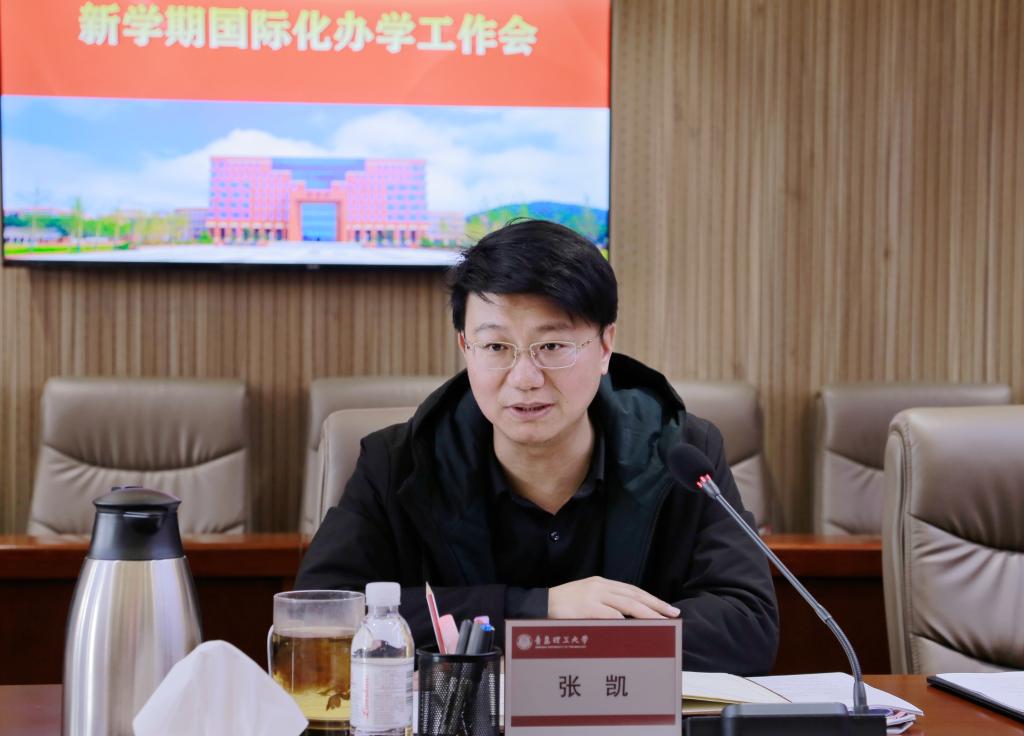 3月31日,学校新学期国际化办学工作会在嘉陵江路校区召开,会议采用线上线下相结合的方式进行。党委常委、副校长张凯主持会议,各学院及临沂校区分管外事工作副院长、外事秘书及国际交流处、国际教育学院全体人员参会。