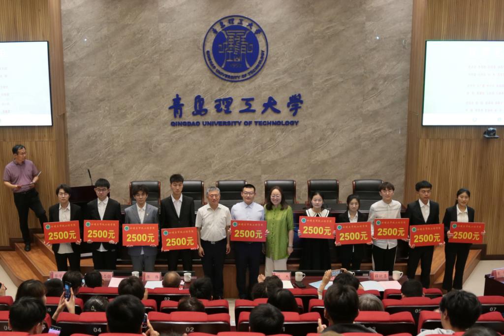 毕学军介绍了“水基金”的筹建历史、发展情况以及学院发展成就,希望同学们时刻心怀感恩,努力奋进,不忘回报母校和回馈社会。青岛市建筑设计研究院集团设备总工刘青宣读了奖助学生名单,获奖同学依次上台领奖。2022年度,共有30名同学受到资助,资助总金额7万元。给排水192班李逸然作为获奖学生代表发言,对奖学金的设立者和校友们表达感激之情,立志将向优秀的学长学姐学习,读万卷书,行万里路,做优秀的青理学子。