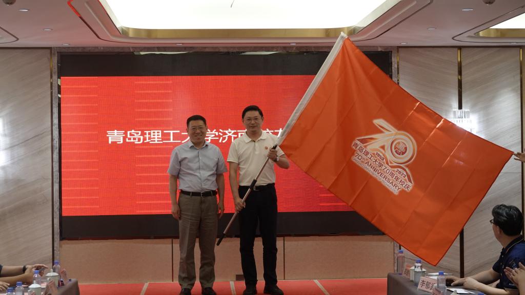 座谈会最后,谭秀森向济南校友会传递了70周年校庆纪念旗,并代表学校向广大校友发出诚挚邀约,诚邀全国各地校友返回母校,共祝母校七十周年华诞。(撰稿:牟宗鑫;审核:钱均、鞠志强)