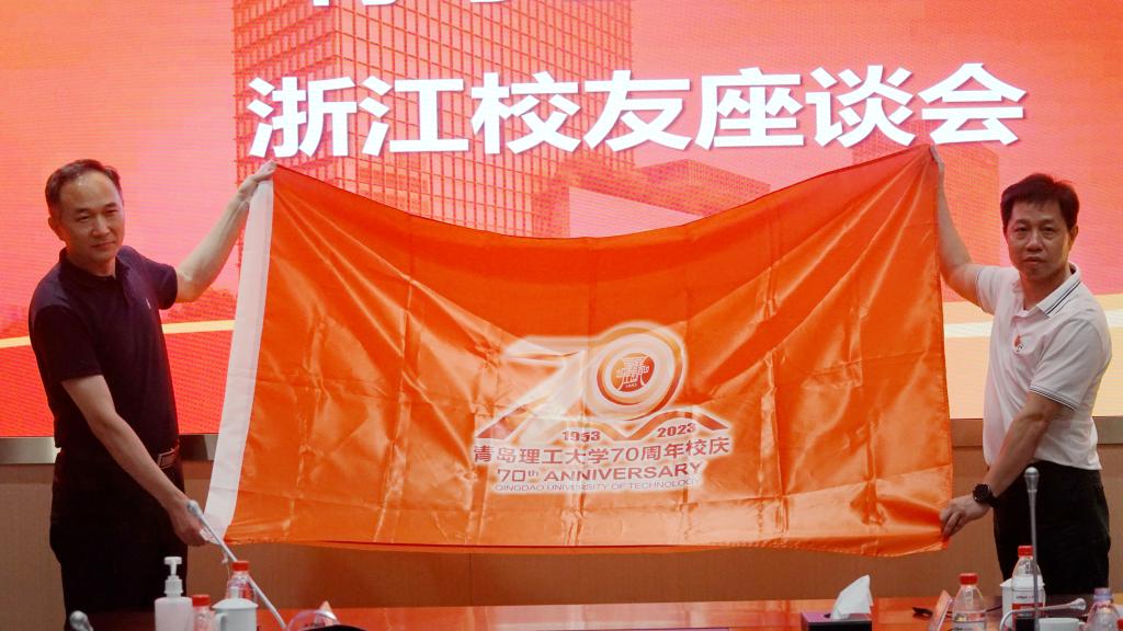 最后,谭秀森一行与校友们一同观看了学校最新版宣传片,郭建锋代表学校向浙江校友会传递了70周年校庆纪念旗,浙江校友会代表向校领导赠送了文创纪念品,表达了对母校培养的感恩之情。(撰稿:李靖,审核:钱均、鞠志强)
