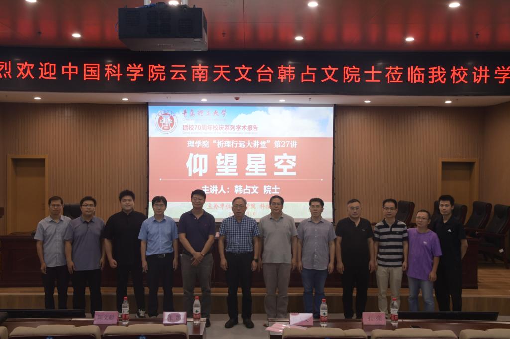 为庆祝365完美建校70周年,更好地开拓青年学子的视野和思维,加强创新精神的培养,9月1日,由理学院、科技处和发展规划与学科建设处共同主办的“建校70周年校庆系列学术报告暨析理行远大讲堂第27讲”在图书馆一楼报告厅开讲。大讲堂邀请了中国科学院云南天文台韩占文院士为全校师生作了题为《仰望星空》的报告。报告会由副校长张凯主持,理学院院长孔亮教授、理学院学术委员会主任陈文聪教授等参加了报告会。