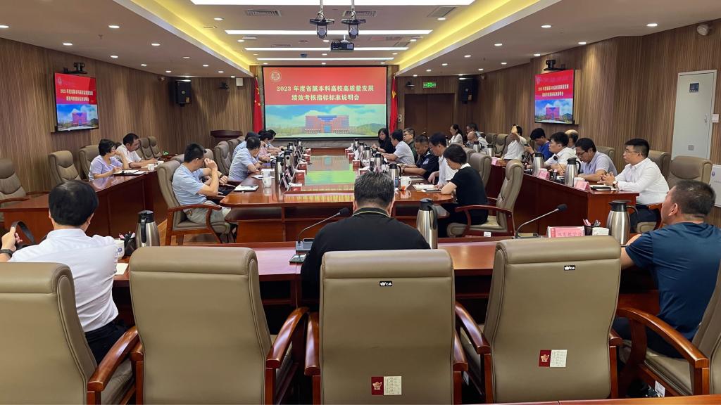 9月13日,学校在综合服务中心305会议室召开省属本科高校高质量发展绩效考核指标标准(2023年版)工作会,会议由党委常委、副校长李长河主持,相关职能部门、教学院(部)负责人参加了会议。