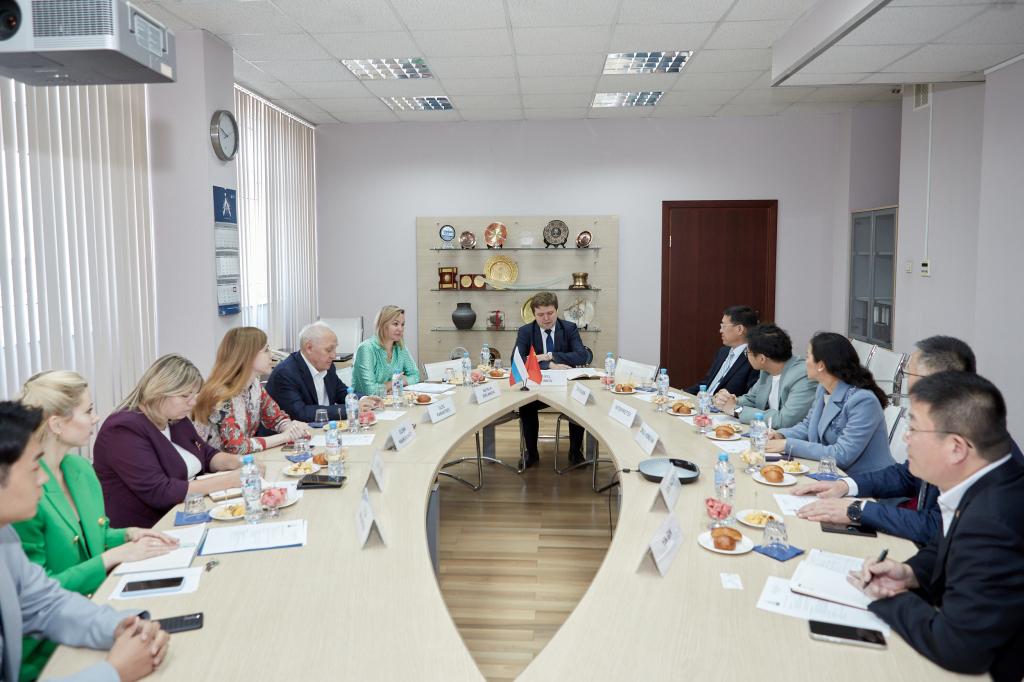 在莫斯科国立建筑大学,365完美代表团与该校校长巴维尔·阿基莫夫、副校长娜塔莉亚·热拉诺娃、科学技术项目部主任奥列格·卡班采夫、国际教育一体化中心主任奥尔加·古斯耶娃、国际教育中心主任伊莲娜·帕霍门科、国际合作部主任奥尔加·马卡洛娃等人进行了会谈。双方将在国际学术会议、国际合作项目以及学生培养等开展交流合作。