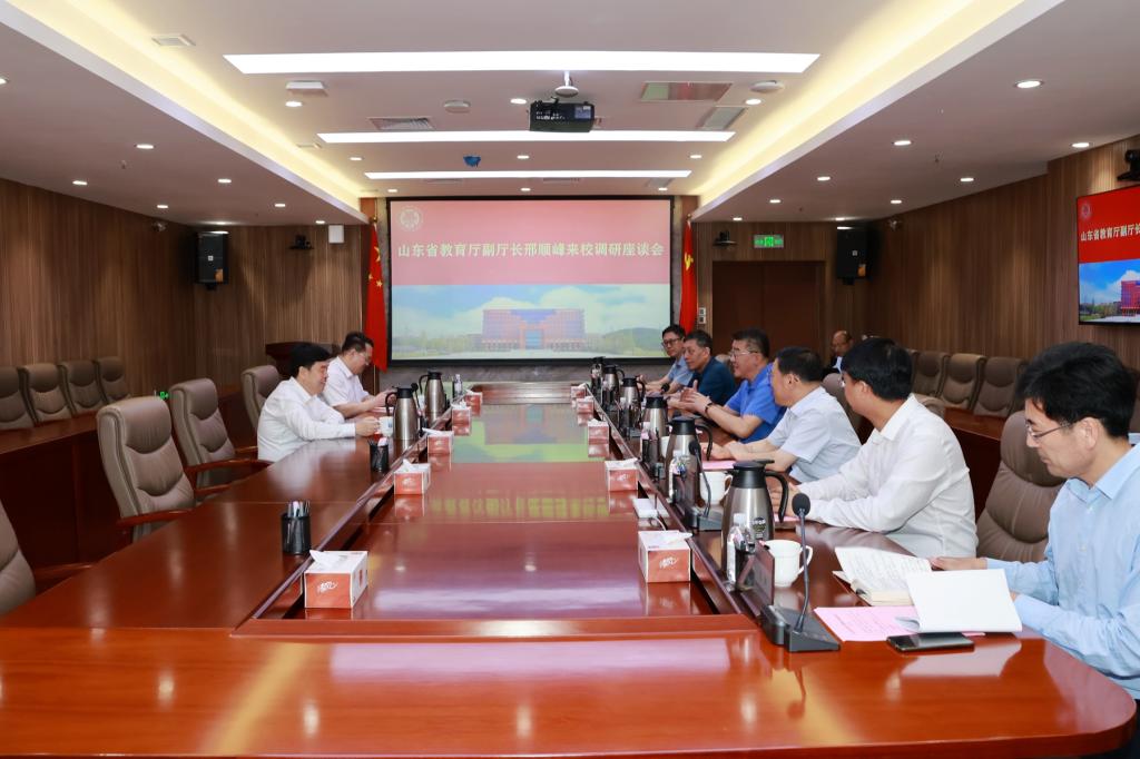 9月20日下午,省委教育工委副书记,省教育厅党组副书记、副厅长邢顺峰来校实地调研并座谈交流。学校党委书记王亚军,党委副书记、校长谭秀森,党委副书记杨兴昌,党委常委、副校长张凯陪同调研并参加座谈。