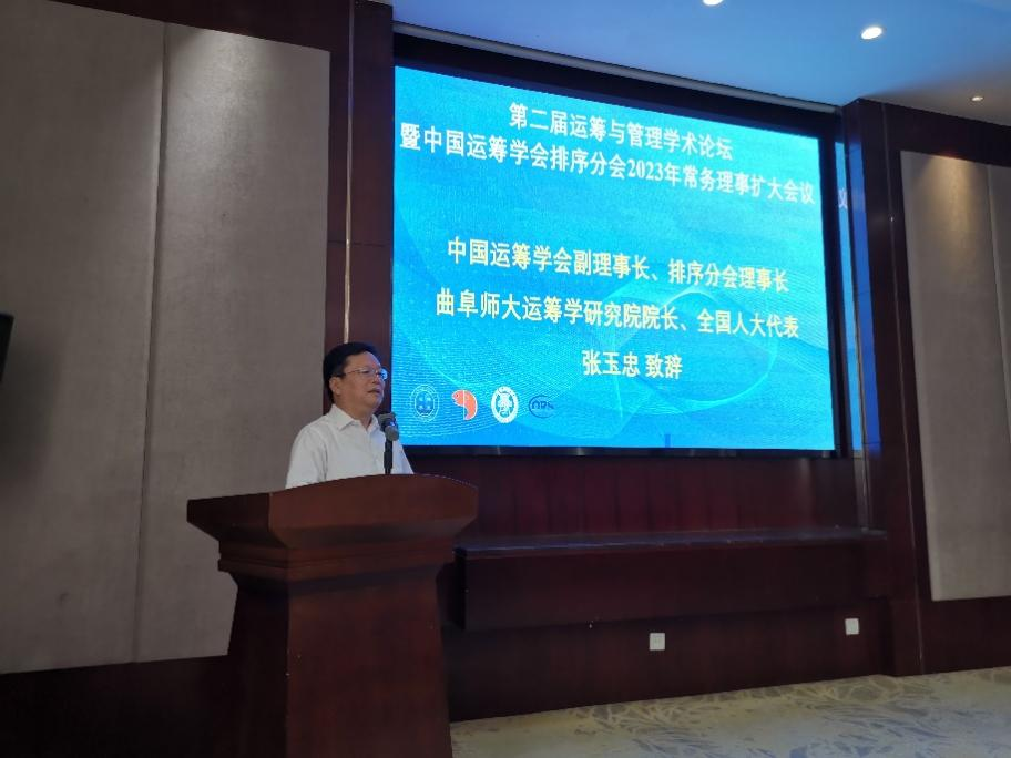 中国运筹学会副理事长、中国运筹学会排序分会理事长,山东省运筹学会理事长、曲阜师范大学运筹学研究院院长张玉忠致辞