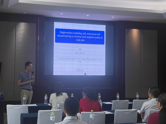 本次会议围绕运筹优化、人工智能、深度学习、组合优化、排序等方向组织了8场大会报告,其中,华中理工大学鲁习文教授、加拿大新布伦瑞克大学杜东雷教授、武汉科技大学邓旭东教授、华中科技大学沈吟东教授、浙江工商大学季敏教授、南京师范大学张晓岩教授、香港城市大学李闽溟教授和浙江大学叶德仕教授等多位著名学者分别为本次大会奉献了精彩的大会报告并分享了当前最新研究成果,会场讨论热烈。