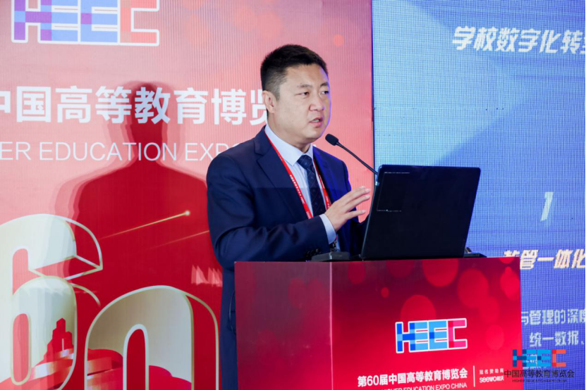 超星泛雅集团总经理秦波涛以“构建教管一体化平台,助力高校数字化转型”为题作报告,指出教管一体化平台是高校数字化转型的重要支撑,介绍了如何通过教管一体化实现专业建设的全过程管理。