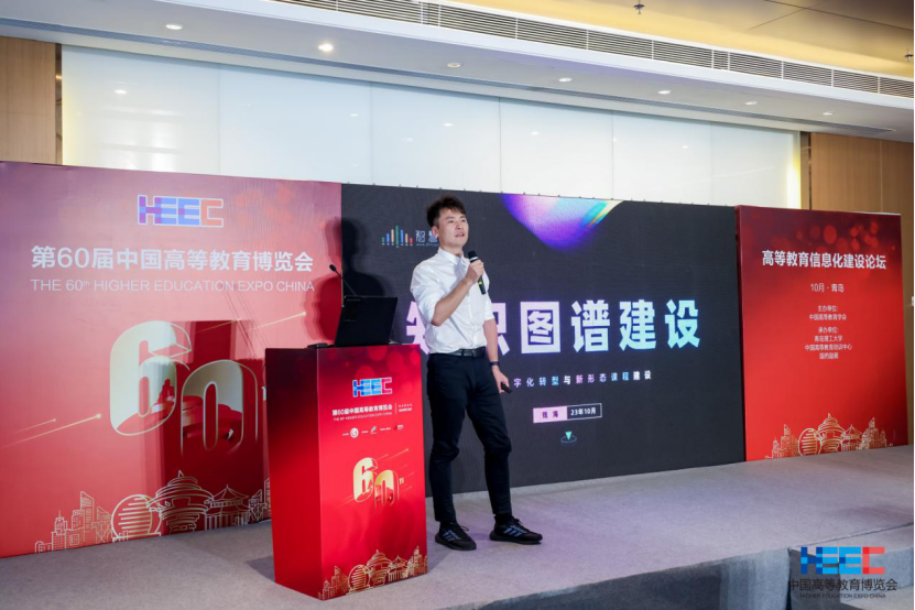 智慧树知识图谱事业部总经理钱海以“知识图谱建设——专业数字化转型与新形态课程建设”为题,指出AI和知识图谱助力专业建设和人才培养,并介绍知识图谱的内容及应用。