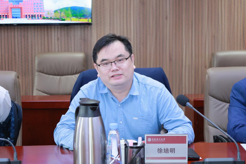 泰山体育产业集团有限公司副总裁徐培明介绍了企业发展情况,并重点介绍了企业新产品研发、科创团队及科研经费投入等情况,希望双方能够进一步加强交流,期待未来更多深度合作的机会,共同推动产教融合,在科技成果转化、本科专业共建、人才培养等方面取得更大成效,共创校企合作的新篇章。