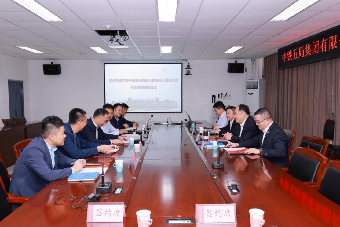 会上,郭建锋代表学校对中铁五局集团有限公司海外工程分公司一行的到来表示热烈欢迎,并围绕学校学科特色优势、人才培养情况等展开介绍。他表示,中铁五局深入贯彻国家“走出去”战略,是“一带一路”建设的重要力量,海外工程分公司代表中铁五局负责全局境外项目,是中老铁路、斯里兰卡南部铁路等重点项目建设主力军,彰显出大国央企担当,向世界展示出中国建筑行业的亮丽名片。学校将以“造血+输血”方式相结合,为中铁五局输送更多的专精人才,在“卡脖子”的技术问题上提供科研支持,搭建起人才共育、产学共建、资源共享的连心桥,开启双向赋能合作新里程。