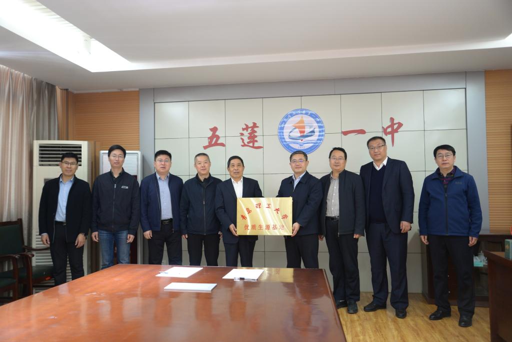 王在泉从学校人才培养、师资队伍、学科建设、专业设置、办学特色以及建校70年来取得的重大成果等方面作相关介绍,对五莲一中长期以来为学校输送大量优质生源表示感谢,希望双方以此次建立优质生源基地为契机,进一步加强交流,推进基础教育与高等教育的有效衔接,促进双方携手育人,共同发展。