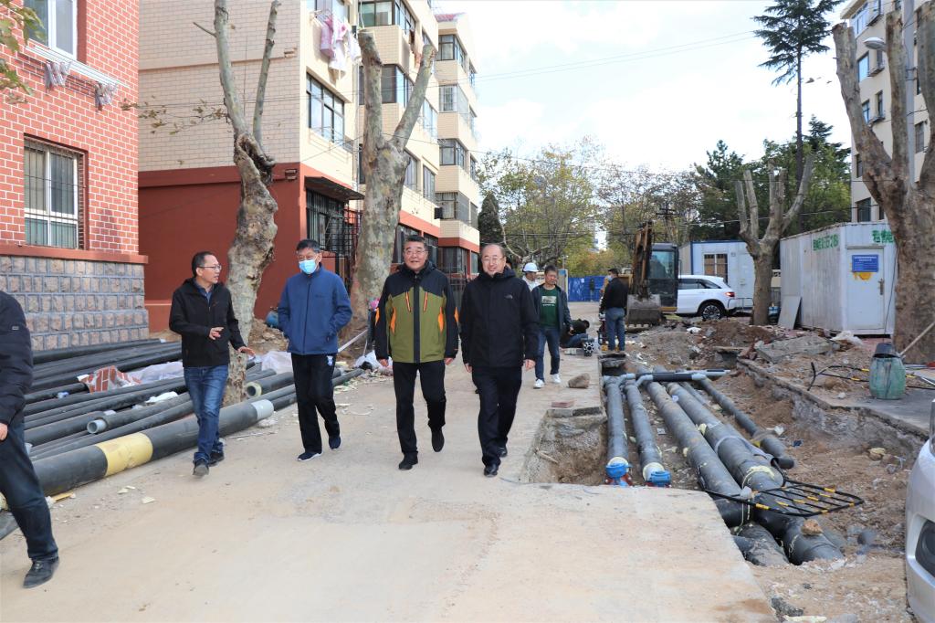 王亚军一行先后实地察看了市北校区换热站、抚顺路家属院区换热站及管网铺设施工现场,听取了后勤管理处和施工单位关于上述改造项目建设情况的汇报,详细了解了各项目进度安排、质量管理和安全文明施工等情况,就项目改造推进中遇到的困难和问题与各相关负责人进行了现场交流。