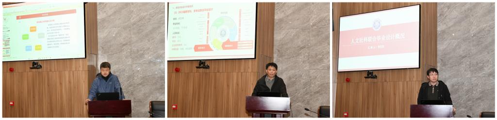 机械与汽车工程学院副院长彭子龙、建筑与城乡规划学院副院长解旭东、商学院副院长朱文龙分别代表3个毕业设计团队,从毕业设计选题、团队搭建、工作进展等情况进行了汇报。