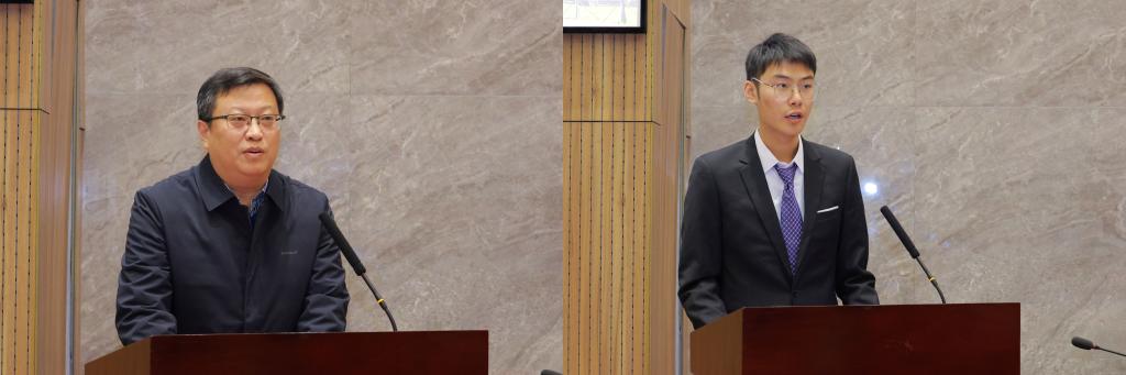 研究生院副院长刘长青教授代表获奖教师发言,他分享了自身在大学生创新创业教育工作中的做法、思考以及培养的优秀学生的案例,并表达了自己“初心如磐石,奋楫当笃行”的决心。土木工程学院土木221班孙浩代表获奖学生发言,他感谢学校和荣华建设集团有限公司给予的这份鼓舞以及肯定,表示在未来将会力学笃行,怀着感恩的心继续向着目标前行,以青年人应有的情怀与担当,尽自己的一份力量为社会贡献所长。