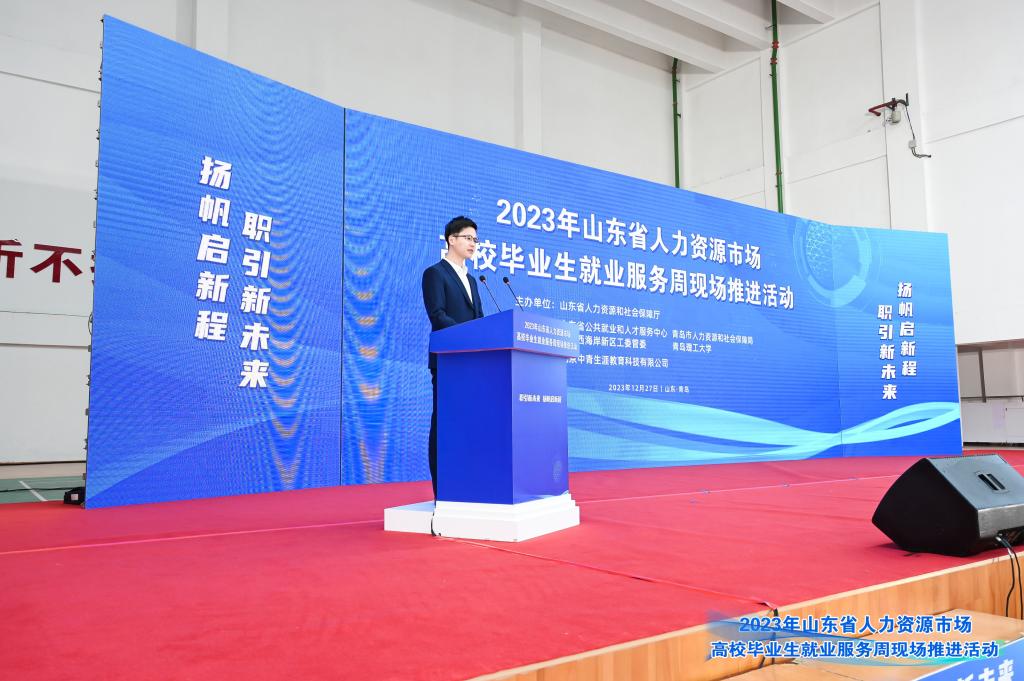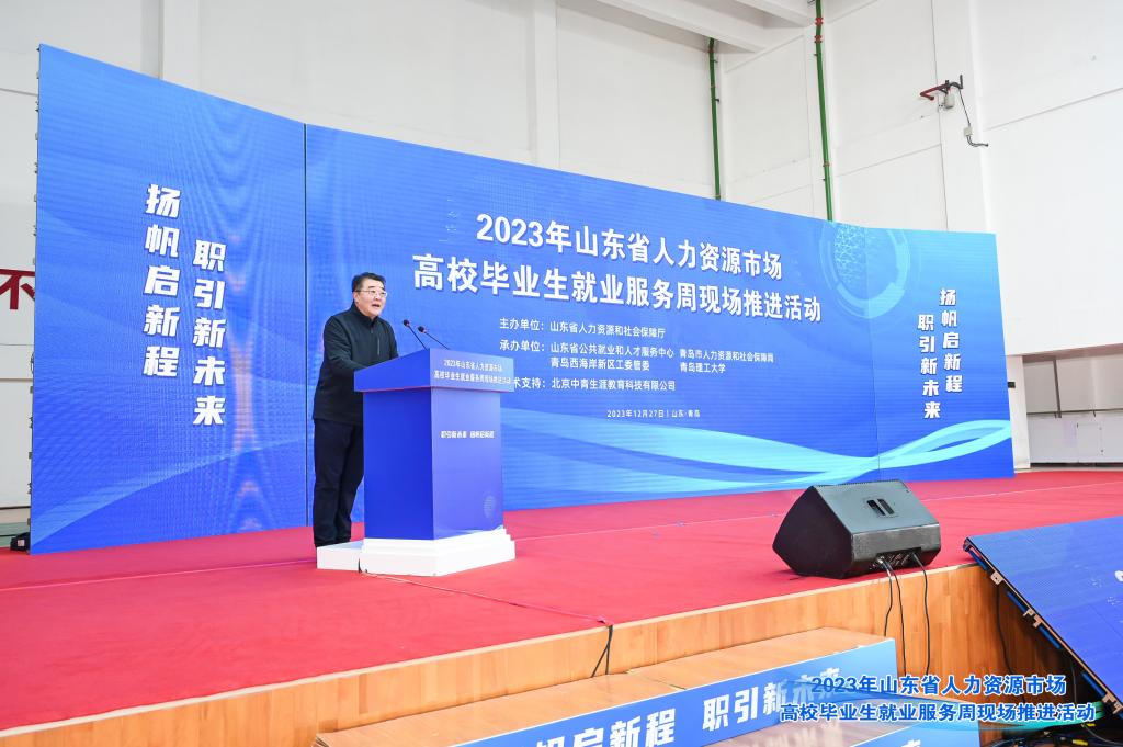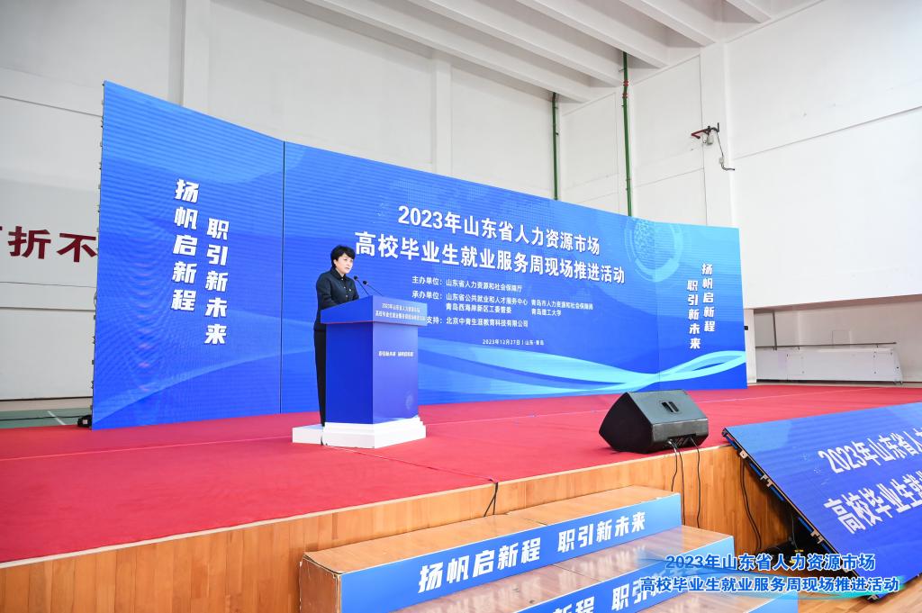 为深入贯彻落实党中央、国务院关于促进高校毕业生就业的决策部署,充分发挥市场在人力资源配置中的决定性作用,促进毕业生高质量充分就业,12月27日,由省人力资源和社会保障厅主办的2023年山东省人力资源市场高校毕业生就业服务周现场推进活动在365完美成功举办。省人力资源和社会保障厅党组成员、副厅长衣军强,学校党委书记王亚军,青岛市委组织部副部长、人力资源和社会保障局党组书记、局长刘学俊,青岛西海岸新区副区长薛山出席活动,市区相关领导对青岛市就业政策及区域人才发展环境进行了推介,人力资源机构代表作了典型发言。