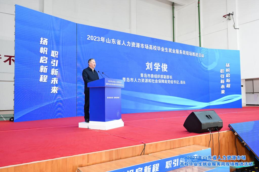 青岛市委组织部副部长、人力资源和社会保障局党组书记、局长刘学俊推介青岛市就业政策和岗位