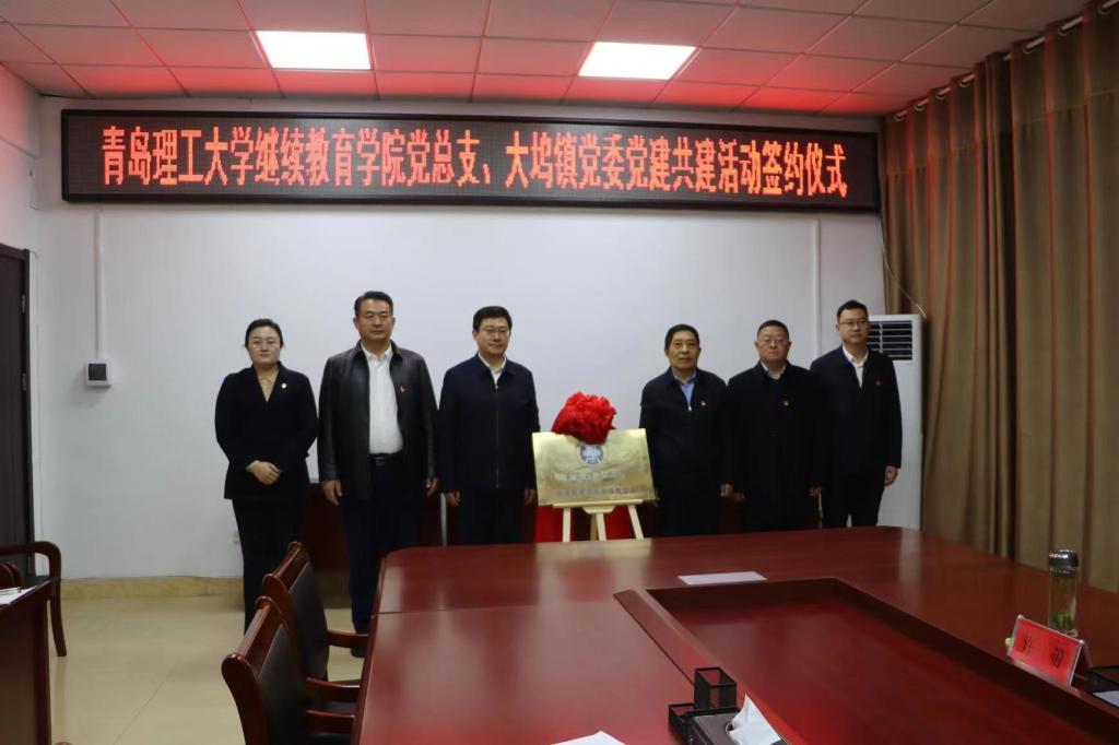 继续教育学院院长董兰国与傅焕青签订党建共建协议。继续教育学院党总支书记孟凡勇与党琪为继续教育学院现场教学点揭牌。