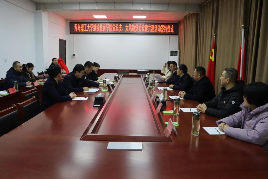 王在泉介绍了学校近年来发展建设取得的成绩,以及学校开展继续教育的情况。他表示,大坞镇是滕州市党建工作的先进镇街,打造了镇党史纪念馆、洪山口大会战记忆馆、刘西乡村记忆馆等一批可观可看可感的党员教育阵地。此次“校镇共建”是新形势下不断加强基层党组织建设、推动基层党建工作不断迈上新台阶的有效途径。希望双方以本次结对共建为契机,不断提升基层党建工作水平,校地协同,将党建工作与业务工作深度融合,以党建引领双方事业高质量发展,服务地方经济社会发展的良性互动,探索更全要素、更多领域、更高效能的校地融合发展新模式,促使结对共建工作取得实际成效。