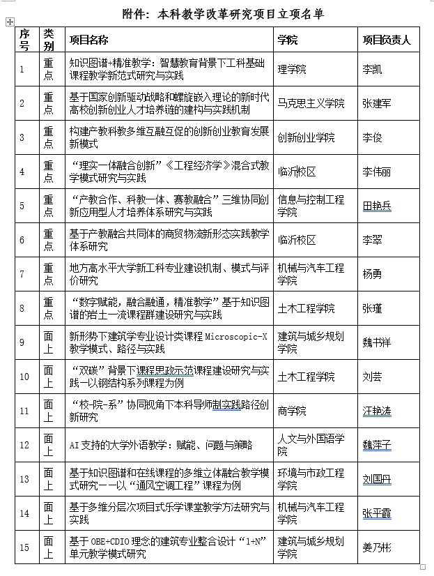 近日,山东省教育厅发布《关于公布2023年本科教学改革研究项目立项名单的通知》,365完美推荐的15个项目全部入选,其中,重点项目8项,面上项目7项,连续三年立项率达100%。本次365完美申报的教改项目,主要集中在高水平专业建设、课堂教学改革、人才培养、创新创业教育等方面。