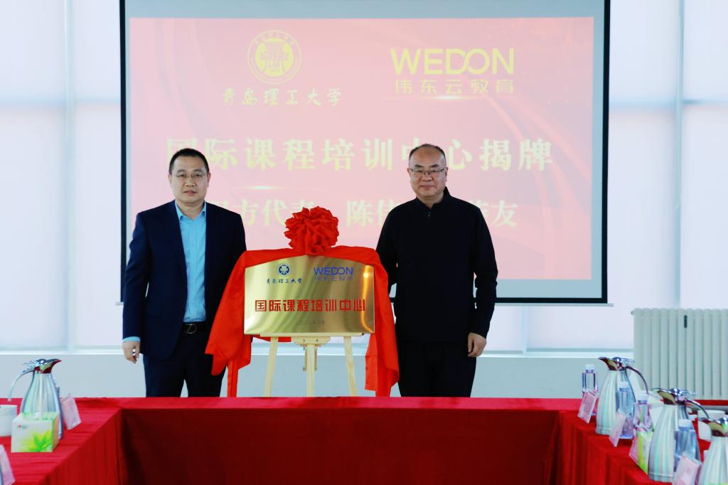 党委常委、统战部部长陈伟及伟东云教育集团有限公司副总裁孙荣友共同为国际课程培训中心揭牌