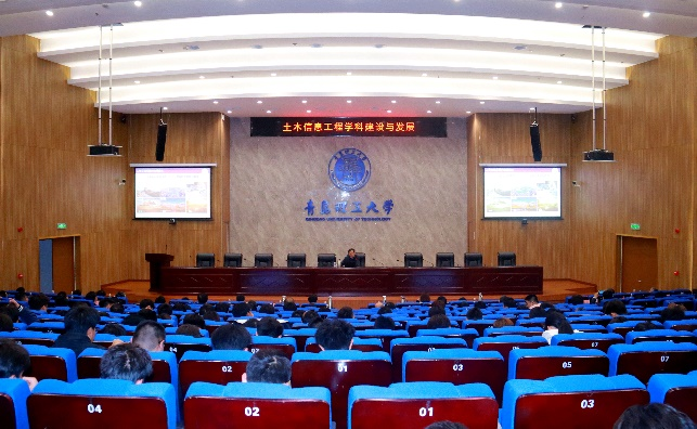 授聘仪式后,朱合华院士在学校主报告厅作“土木信息工程学科建设与发展”主题报告。会议由张凯主持,各行政部门负责人、各学院领导以及师生代表共计200余人参加报告会。朱合华院士从土木工程发展、数字化赋能、土木信息工程的内涵与外延、土木信息工程专业建设等方面进行了全面介绍。