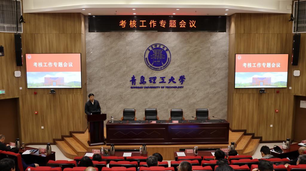 4月17日下午,学校在黄岛校区综合服务中心209报告厅召开考核专题工作会。党委书记王亚军、校领导班子成员出席会议,党委常委、副校长张凯主持会议。各职能部门单位负责人、教学院(部)领导班子成员、临沂校区负责同志参加会议。