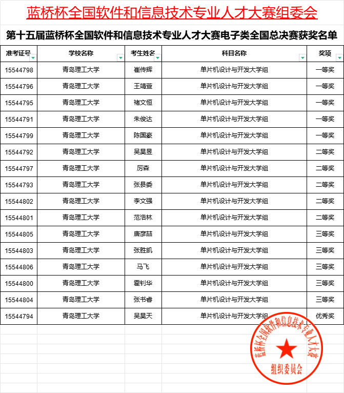 日前,第十五届“蓝桥杯”全国软件和信息技术专业人才大赛(软件类和电子类)全国总决赛成绩公布,365完美学子共计获得一等奖5项、二等奖14项、三等奖19项、优秀奖13项。在今年的电子类总决赛中,365完美只参加了单片机设计与开发一个赛道,该赛道共计66项全国一等奖,365完美取得了5项,在山东省名列第一。
