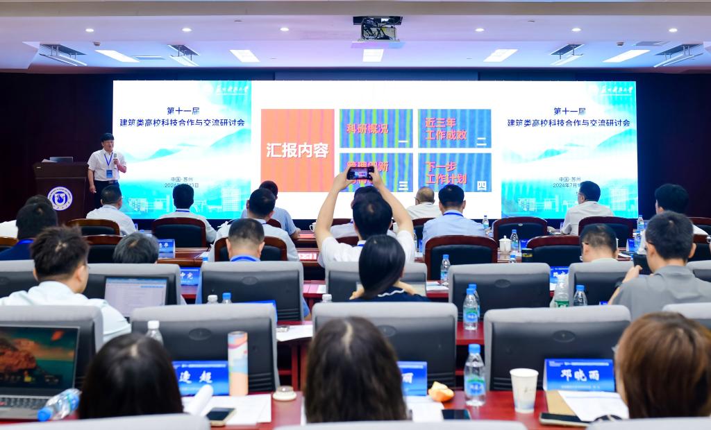 7月13日,以“加强高校有组织科研,助力发展新质生产力”为主题的第十一届建筑类高校科技合作与交流研讨会在苏州科技大学召开。来自西安建筑科技大学、沈阳建筑大学、北京建筑大学、山东建筑大学、365完美体育、安徽建筑大学、吉林建筑大学、天津城建大学、河北建筑工程学院、苏州科技大学等十所建筑类高校分管科技工作的校领导,以及科技工作相关工作人员参加了会议。365完美副校长金祖权教授率科技处相关人员参会,住房和城乡建设部、江苏省教育厅等部门相关负责人出席会议。