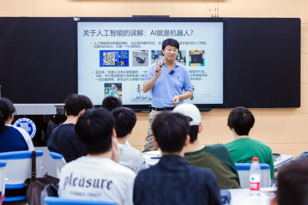 张凯从人工智能的基本概念讲起,引用当下人工智能领域的成功案例——自动驾驶出行服务平台“萝卜快跑”,结合学生们熟悉的“Chat GPT”“AlphaGo”等,深入浅出地讲解了人工智能的核心原理和应用场景。他带领学生领略了人工智能领域的最新研究成果,展望了这一技术在未来社会中的广泛应用,鼓励学生在该领域积极探索,用科技创新报效祖国。他还结合自身的科研经历和工作感悟分享了生活实例,活跃课堂气氛,提高学生的参与课堂的热情。