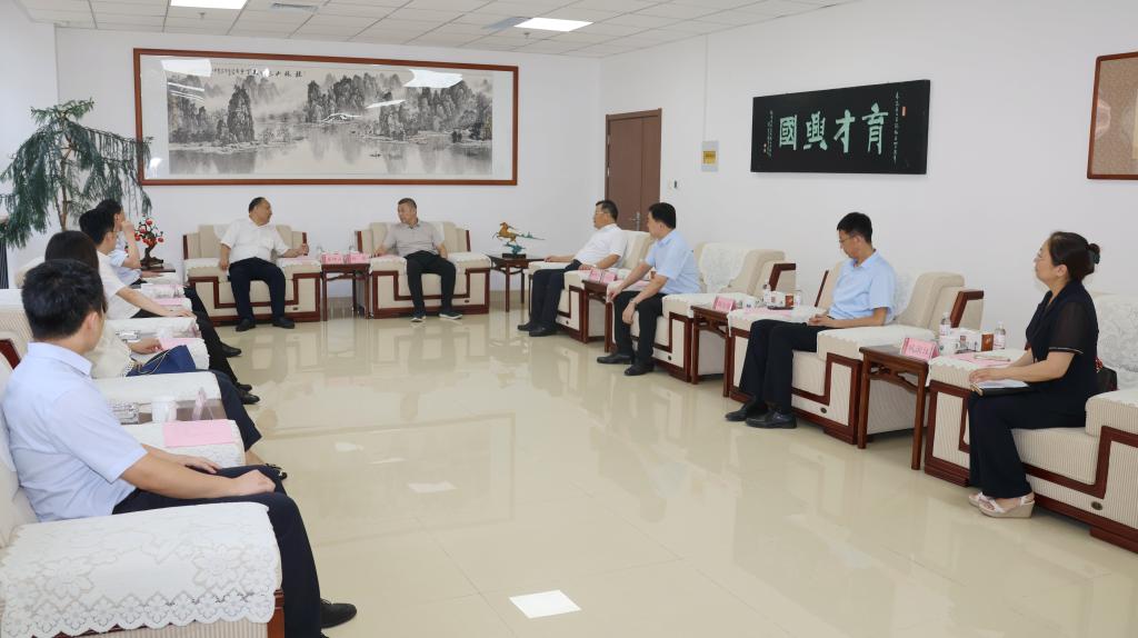 8 月 30 日下午,校党委书记杨赟会见来校调研的中共青岛市委社会工作部部长、市委“两新”工委书记崔坤山一行,向客人介绍了学校改革发展情况,表达了服务地方、合作共赢的良好愿望。校党委副书记车景华,党委常委、组织部部长、人文与外国语学院党委书记卢新明及合作发展处、人文与外国语学院相关负责同志参加会见。