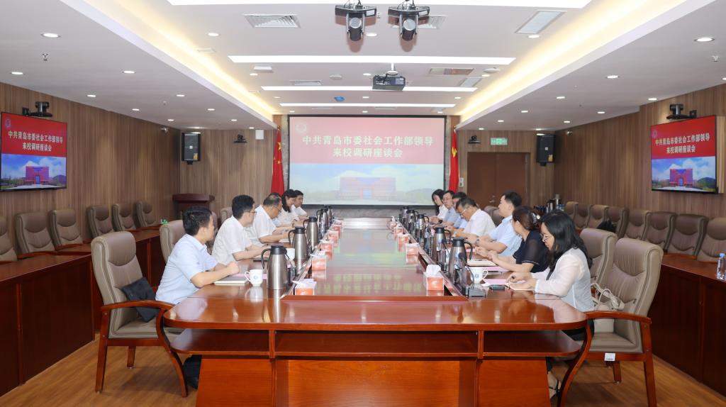 杨赟对崔坤山一行的到来表示热烈欢迎,向市委社会工作部对学校发展给予的关心支持表示诚挚感谢。他简要介绍了学校第四次党代会盛况,强调学校正在深入实施“1224”发展战略,加快建设国内一流应用研究型理工大学。崔坤山部长对学校近年来取得的显著成绩给与高度评价,对社会工作专业发展给予充分肯定,希望进一步加强校地协作,为青岛社会工作事业健康持续发展助力赋能。
