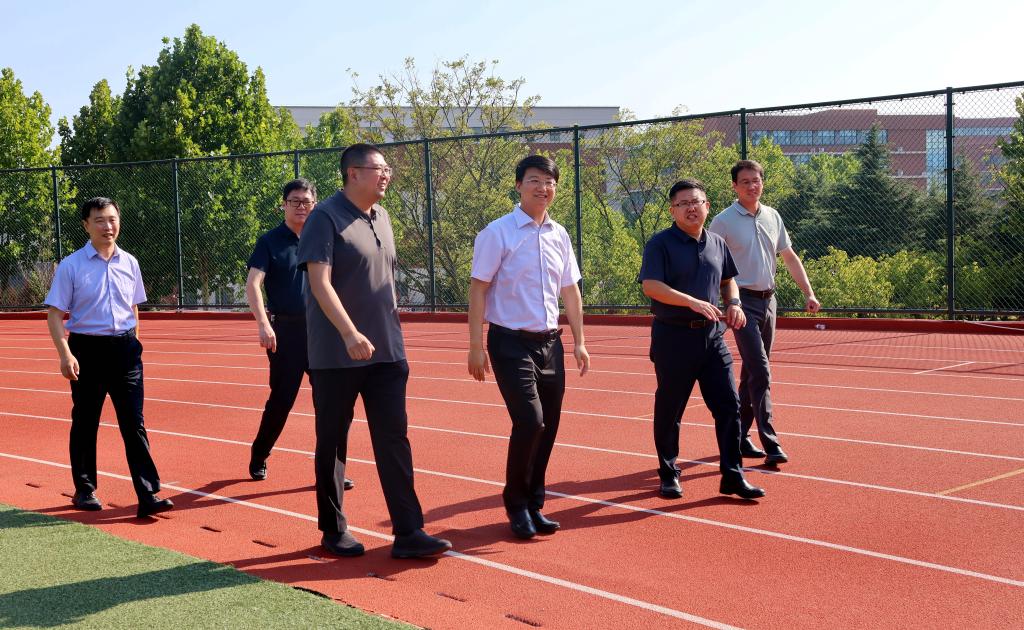 杨赟、张凯一行先后来到东操场、篮球场、西操场观摩了参训学生训练情况,与承训教官、跟训辅导员和现场医务人员进行亲切交谈,详细了解了军训各项训练科目、训练进度以及学生的身体、心理、生活等相关情况。