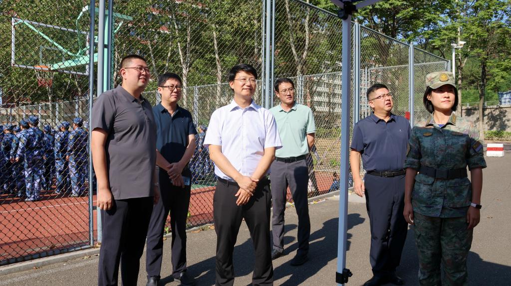 杨赟向正在参加训练的同学们表示慰问,向全体承训教官和跟训辅导员表示感谢,并对同学们意气风发、斗志昂扬的精神面貌给予了充分肯定。他表示,军训是青年学生国防教育的重要内容,是提高自身综合素质和磨炼坚强意志的重要一课,希望全体同学珍惜机会、刻苦训练,磨砺坚韧品格、练就过硬本领。
