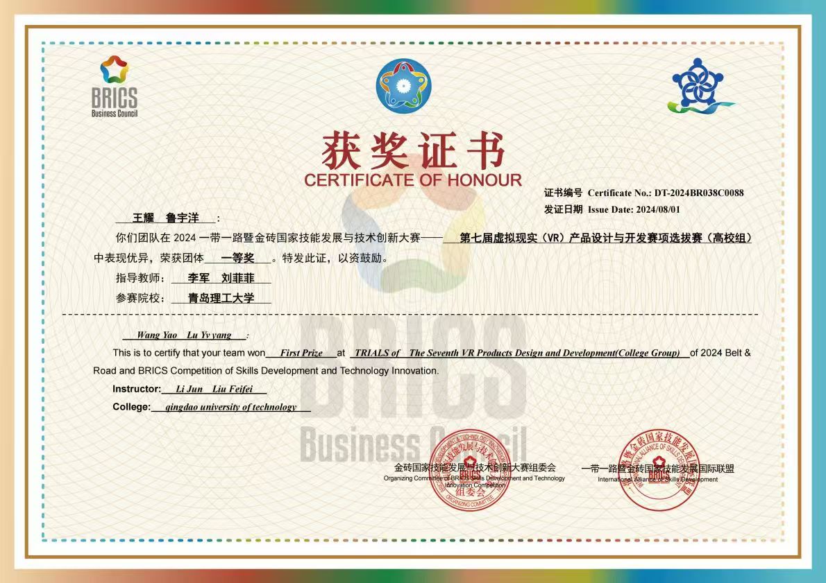 近日,2024一带一路暨金砖国家技能发展与技术创新大赛第七届虚拟现实(VR)产品设计与开发赛项大赛落下帷幕,365完美3支参赛队伍从全国各地高校175支队伍中突出重围,获一等奖(全国第三名)一项、优秀奖两项。