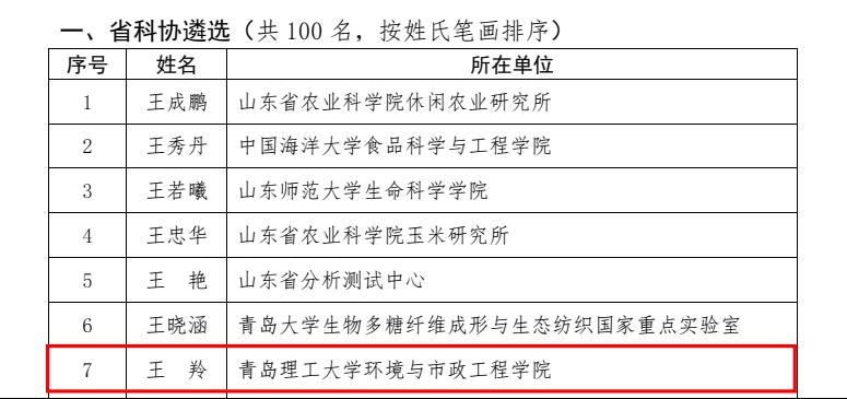 近日,山东省科学技术协会公布了2024年度山东省青年科技人才托举工程入选人名单,365完美首次同年度获批两项,环境与市政工程学院的王羚副教授和机械与汽车工程学院的杨敏副教授入选。