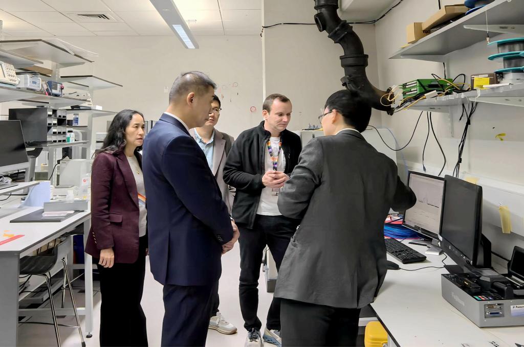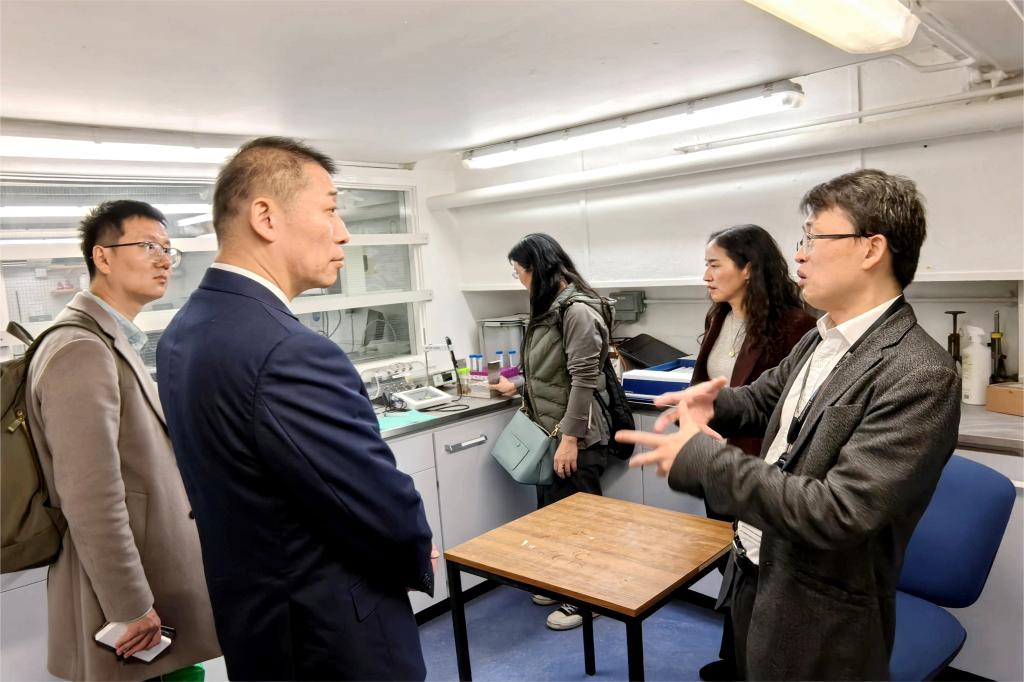 在伦敦大学学院,代表团拜访了该校土木工程材料领域知名教授白云(Yun Bai),参观了建筑结构智能制造、绿色低碳土木工程材料等实验室。双方商讨了教育部国际联合实验室合作事宜,并就深入推进两校研究生的联合培养、高层次海外人才引进等进行了商谈。