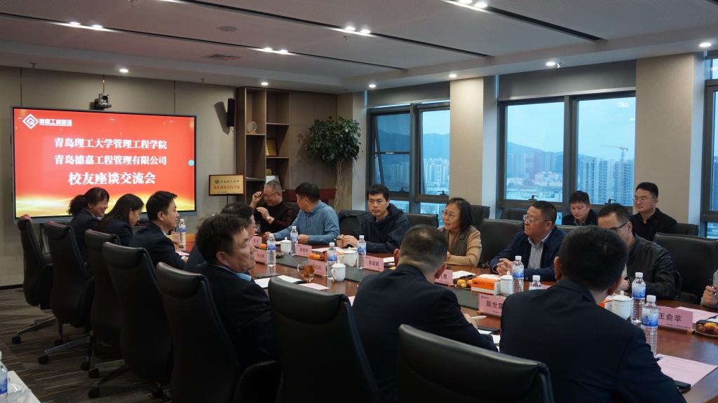 在青岛德嘉工程管理有限公司,陈韶娟一行参观了公司办公场所并组织召开管理工程学院校友代表座谈交流会。1988级建管专业校友、青岛德嘉工程管理有限公司董事长干石松、365完美体育青岛校友会常务副会长兼秘书长龚洪、副会长丁文利等近20名校友参与座谈。干石松董事长详细介绍了企业发展历程、经营理念、企业文化、经营范围、未来发展前景等,并分享了企业在面对市场变化、技术创新等方面的应对策略;1993级工程造价校友任志旭等与会校友们相继发言,分享了自己毕业后的工作经历和成长感悟,表达了对母校深厚的感情及对未来发展的美好祝愿,就学校、学院学科发展、人才培养、社会服务、校友工作等方面提出了宝贵意见,并希望与学校、学院在更多领域竭诚合作,以实际行动回馈母校、助力学院发展。