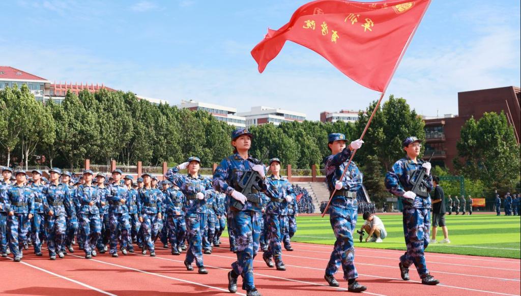 沙场点兵铸铁骨,军训熔炉塑脊梁。9月11日上午,青岛校区2025级新生军训总结表彰大会在黄岛校区西运动场隆重举行。学校党委书记杨赟,党委副书记、校长张凯,91033部队政委于洋,青岛警备区动员处处长王庆涛,学校领导班子其他成员,相关职能部门和各学院负责同志,以及2025级全体军训教官和参训新生参加大会。大会由学生工作处处长(武装部部长)高洁主持。