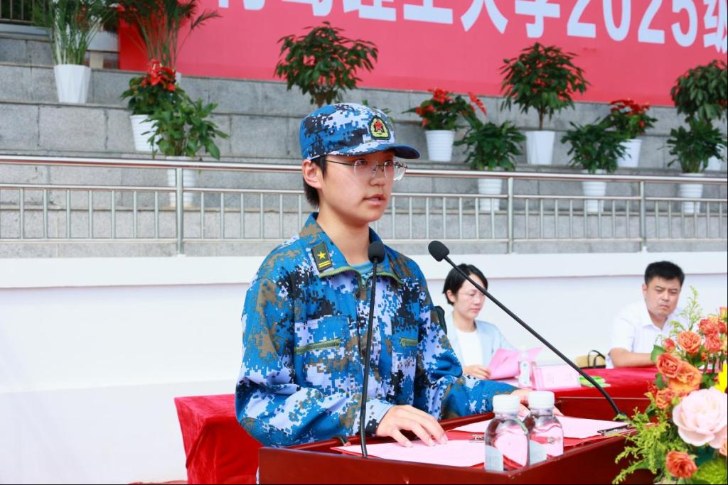 土木工程学院中美土木专业1班王悦曦作为学生代表发言,分享了军训收获和感悟,表示将继续发扬军训优良作风,以顽强拼搏的姿态开启大学生活。承训教官代表在发言中充分肯定了同学们的优异表现,鼓励同学牢记责任、锤炼意志、锻造品格,努力成为心怀家国,堪当民族复兴重任的时代新人。