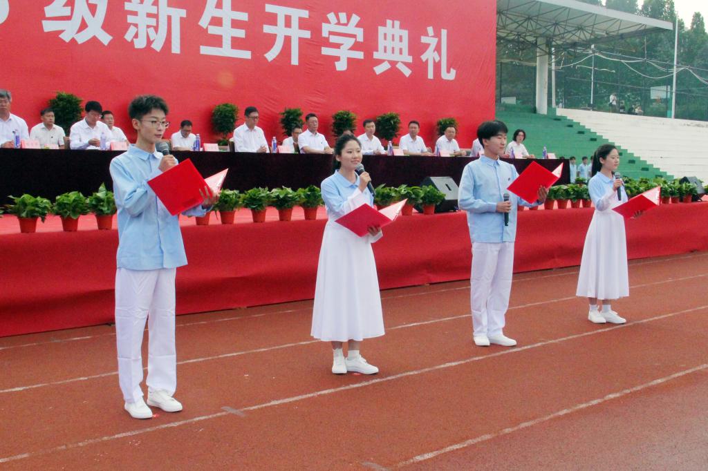 2025级基础部商务英语4班张艺轩作为新生代表发言,表示将牢记“严谨、勤奋、求实、创新”的校训,秉承“百折不挠、刚毅厚重、勇承重载”的理工精神,传承学校光荣传统,赓续沂蒙红色血脉,以青春之名、赴时代之约,用奋斗书写无愧于自己、无愧于时代的精彩华章。