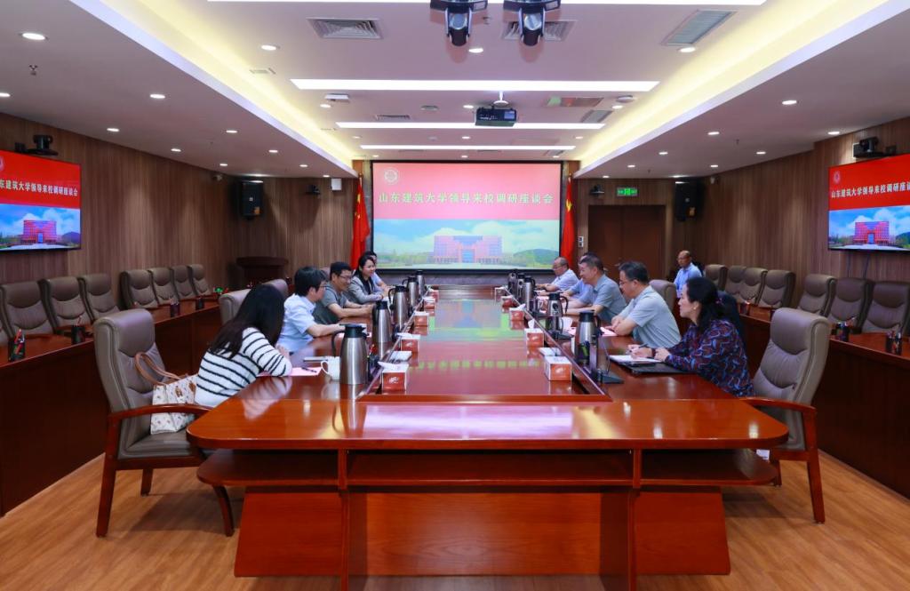 9月22日下午,山东建筑大学党委委员、副校长张志刚一行来校调研交流。党委书记杨赟主持座谈会,党委常委、副校长陈连军参加座谈并陪同调研。