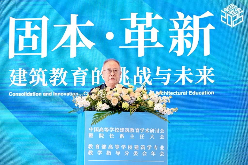 中国工程院院士、教育部高等学校建筑类专业教学指导委员会主任委员、东南大学王建国致辞并作“建筑学专业教学指导分委员会2025年度工作报告”