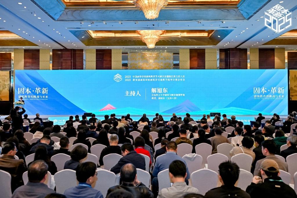 王建国致辞并作了建筑学专业教学指导分委员会2025年度工作报告。他对学校为会议举办提供的支持表示感谢,并介绍了大会六大专题设置。他从虚拟仿真技术在建筑学实验教学能力培养中的能力图谱构建等七个方面,系统阐述了分委会年度重点工作。他指出,当前中国建筑教育正处于转型发展的关键阶段,面临新的机遇和挑战,并围绕建筑专业教育评估与人才出口标准优化、人才培养模式创新提出前瞻性建议。