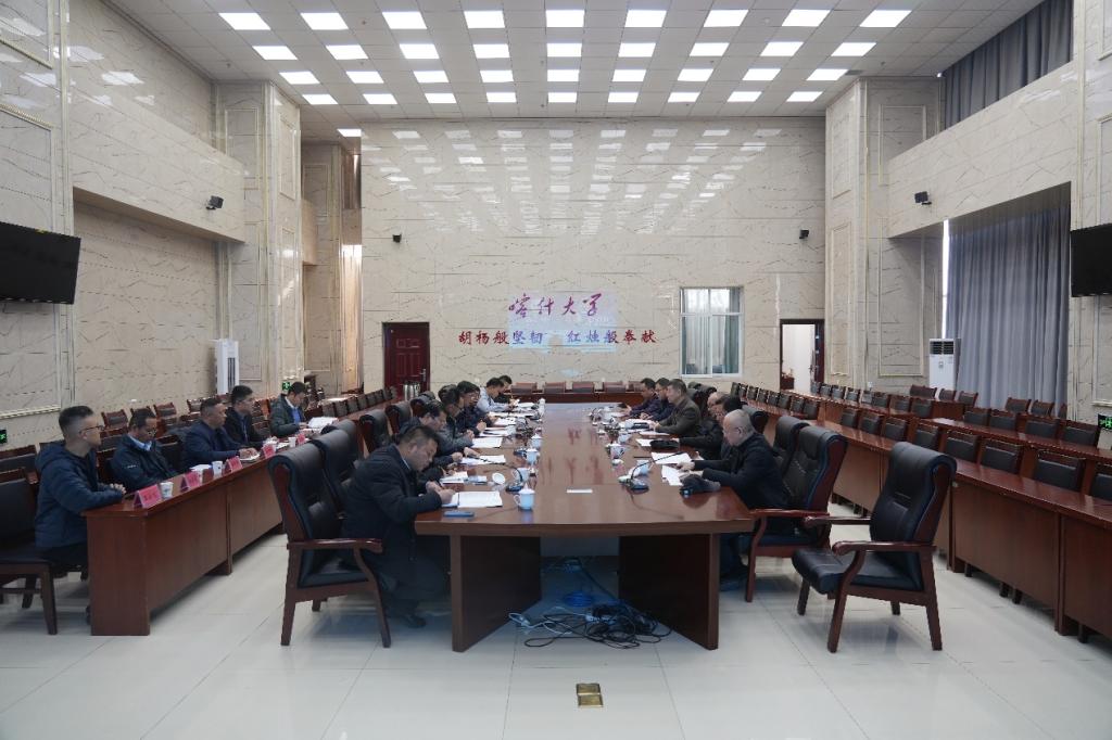 在喀什大学,受喀什大学党委书记丁邦文,党委副书记、校长帕力旦·吐尔逊委托,喀什大学党委副书记邓勇主持座谈会并致辞,他对杨赟一行到校调研表示欢迎,对学校前期对喀什大学的对口帮助表示诚挚感谢。他表示,两校在长期的办学实践中建立了良好的合作基础,期望两校进一步深化合作交流、互学互鉴。杨赟高度评价了喀什大学近年来高质量发展取得的显著成效,希望携手推动两校在更高层次、更广领域的务实合作,共同谱写新时代对口支援工作的新篇章,为服务共建国家“一带一路”倡议高质量发展贡献高校力量。双方围绕深化合作进行了深入交流,针对党建工作、统战工作、科技创新与社会服务、产教融合、校办企业等方面的经验做法进行了深入探讨。喀什大学党委常委、统战部部长宁立庆,党委办公室、教务处(督导办公室)、后勤管理处、科研处、发展规划处、国际交流与合作处、建筑学院等有关负责同志参加座谈。杨赟一行还参观了思想政治教育基地、黄胄艺术研究院等。