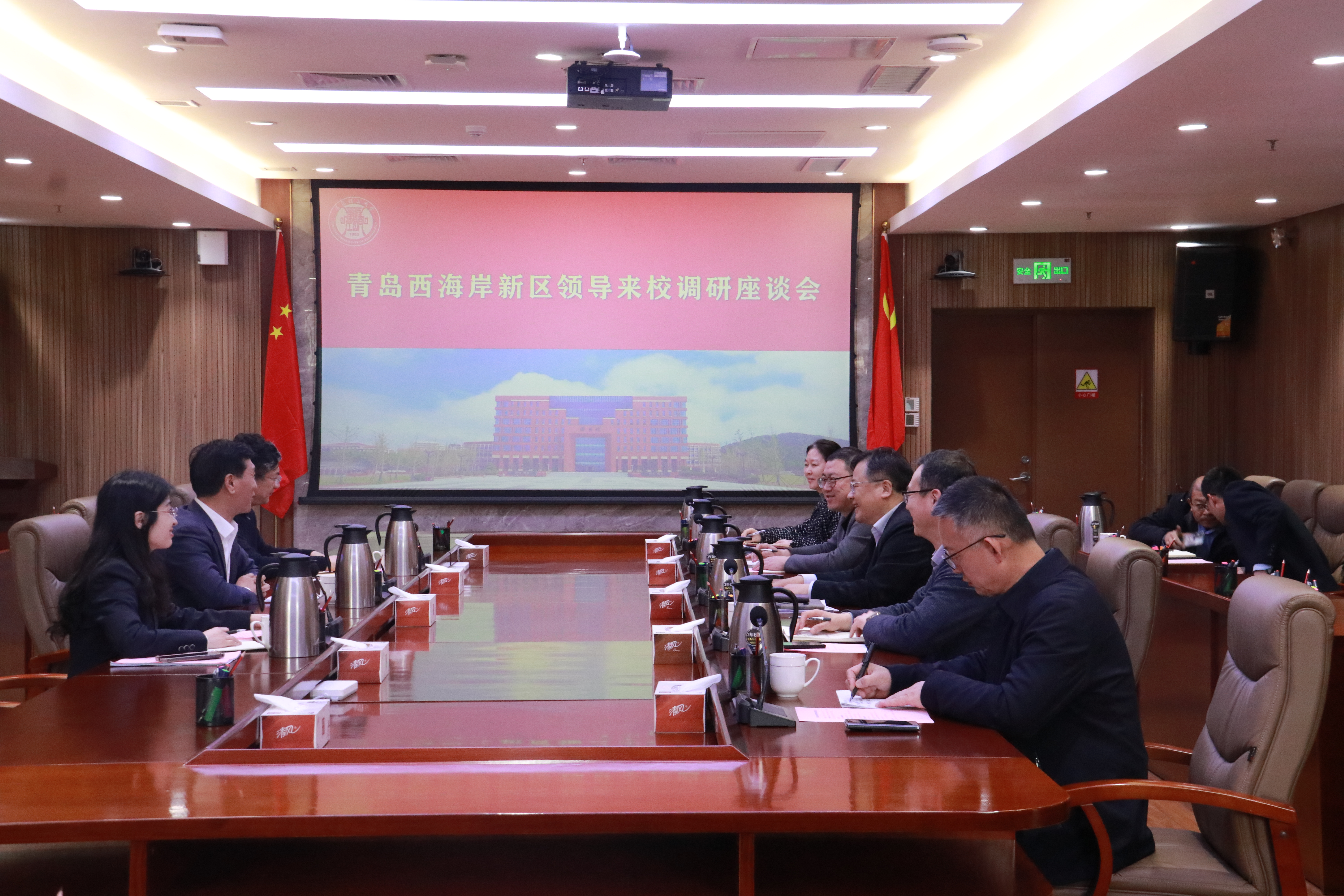 3月22日下午,黄岛区政府党组成员、副区长赵英民一行来校调研交流。党委副书记车景华陪同调研并主持座谈。