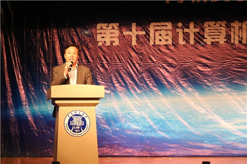 李东在致辞时指出,长期以来,学校高度重视大学生科技创新工作,校团委、学生处、教务处等各职能部门统筹协调,紧紧围绕服务学生成长成才这一中心,秉承“严谨 勤奋 求实 创新”的校风,积极搭建大学生科技创新成长的服务平台。2015年,全校共有105个科技创新项目和61个科技创新活动获批立项并获得资金支持,直接参与科技活动和校级以上科技竞赛的学生近3万人次,形成了“勇于创新、乐于创新和协同创新、竞争创新”的浓厚科技创新氛围。在第十四届“挑战杯”大学生课外学术科技作品竞赛、全国大学生数学建模竞赛、全国大学生电子设计竞赛、“蓝桥杯”全国软件设计与信息技术大赛等各类竞赛活动中荣获国家级奖项110余项、省部级奖项300余项。作为校级科技创新品牌活动之一的计算机科技文化节已经成为培养大学生科学精神,提升大学生创新能力的重要载体,成为大学生积极参与科技创新的重要平台,逐步成为365完美大学生科技文化活动的重要品牌。李东希望同学们以饱满的热情、脚踏实地的作风、求真务实的态度、奋发进取的精神投入到专业学习与科技创新活动之中,善观察,勤思考,多动手,进一步增强创新意识与创新精神,提升创新能力与职业能力,为实现学校高质量教学研究型特色名校的理工梦和中华民族伟大复兴的中国梦贡献青春力量!