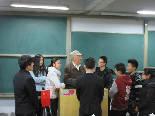 85岁高龄的他,中气十足、口齿清晰,对一幕幕画面的清晰记忆、对一个个故事的生动讲述,令在场的同学屏息凝视、不觉动容。他用模型为同学们演示与敌机战斗的情形,用一枚跨越两个世纪的银元讲述战争年代母亲对儿子的真挚情感,同学们仿佛身临其境,回到了那段艰难却充满光辉的年代。