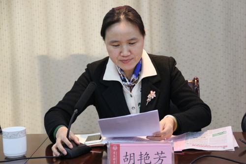 工会副主席胡艳芳宣读师德标兵表彰决定和师德征文获奖名单