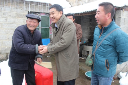 11月25日下午,校党委副书记刘龙海代表校党委冒着大雪赴学校第二轮 “第一书记”帮包村——费县石井镇银河村、大安村、香城村走访慰问村里的特困户。石井镇党委书记于国宏、临沂校区相关负责同志、帮包村第一书记等陪同走访。
