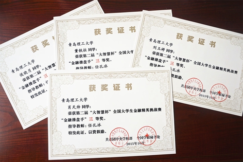 商学院在比赛前积极宣传,组织学生积极报名参赛,并予以认真指导,学生参赛踊跃,精心准备,根据客观条件布置修改投资策略。最终,商学院财务管理131班侯晓月、财管142班董铁柱、国商142班肖天帅和刘玉婷四名同学获本届大赛“金融操盘手”三等奖。(商学院)